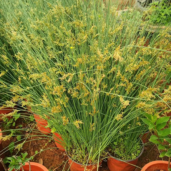 燈心草(學(xué)名:Juncuseffusus),中藥名,是多年生草本水生植物,地下莖短,匍匐性,稈叢生直立,圓筒形,實(shí)心,莖基部具棕色,退化呈鱗片狀鞘葉,穗狀花序,頂生,在莖上呈假側(cè)生狀,基部苞片延伸呈莖狀,花下具2枚小苞片,花被裂片6枚,雄蕊3枚,雌蕊柱頭3分歧。褐黃色蒴果,卵形或橢圓形,種子黃色呈倒卵形。燈心草也是藥用植物。